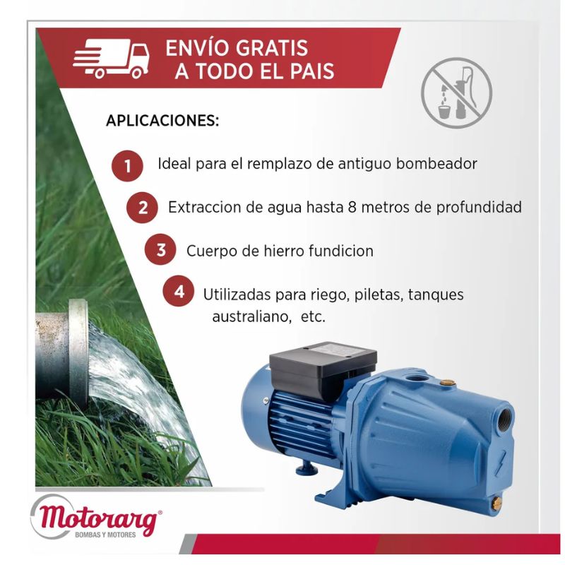 Son recomendadas para trabajar bombeando desde pozos abiertos o cisternas, colocando siempre una válvula de retención de pie en el extremo de la cañería de aspiración.