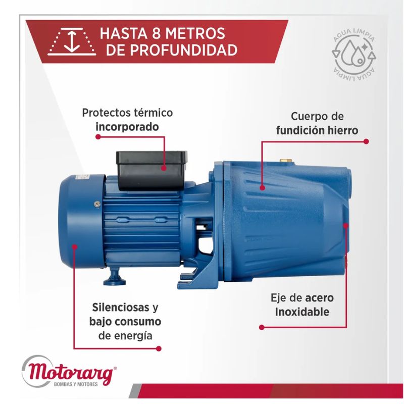 La línea de electrobombas autoaspirantes “BF”, de gran poder de aspiración y cebado, está diseñada para bombear hasta 8 metros de profundidad.