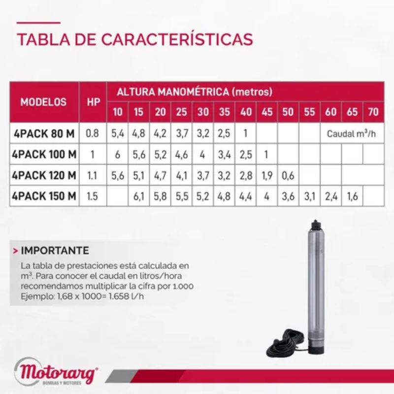 • Para perforaciones de 4″ o cisterna.
