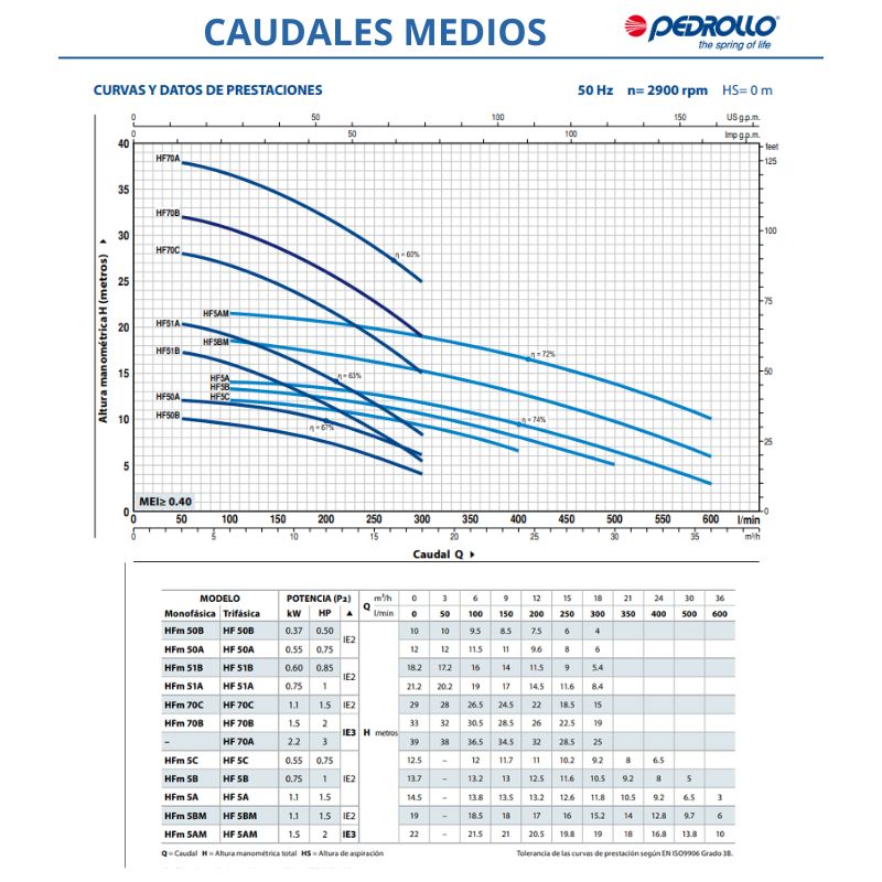 Bombas centrifugas linea HF medio y alto caudal Pedrollo