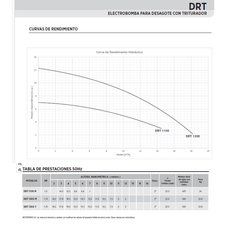 • Sumergencia mínima 500 mm