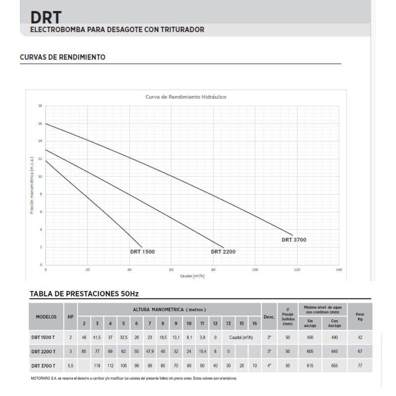 Bombas para desagote con trituradora Motorarg Linea DRT 1500/ 2200 / 3700