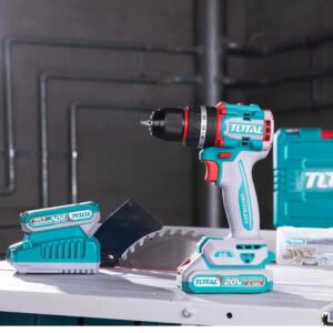 Máxima fuerza y autonomía: el Taladro TOTAL TDLI20668-4 (20V) ofrece 2000 rpm y 66Nm de torque con motor brushless, ideal para trabajos exigentes sin cables.